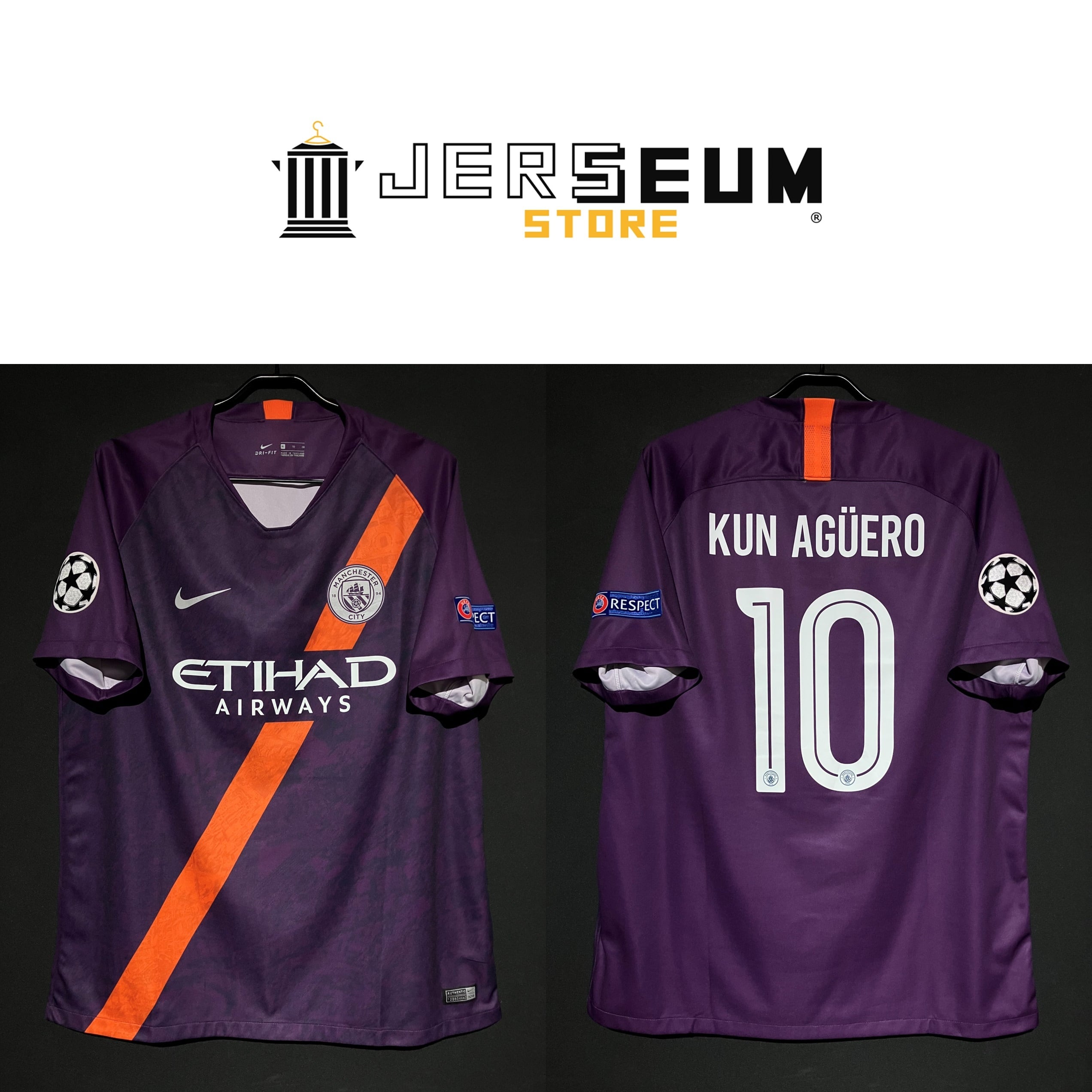【2018/19】 / Manchester City F.C.(3rd) / Condition:Preowned / Grade:7 / Size:XL / No.10 KUN AGUERO | JERSEUM STORE
